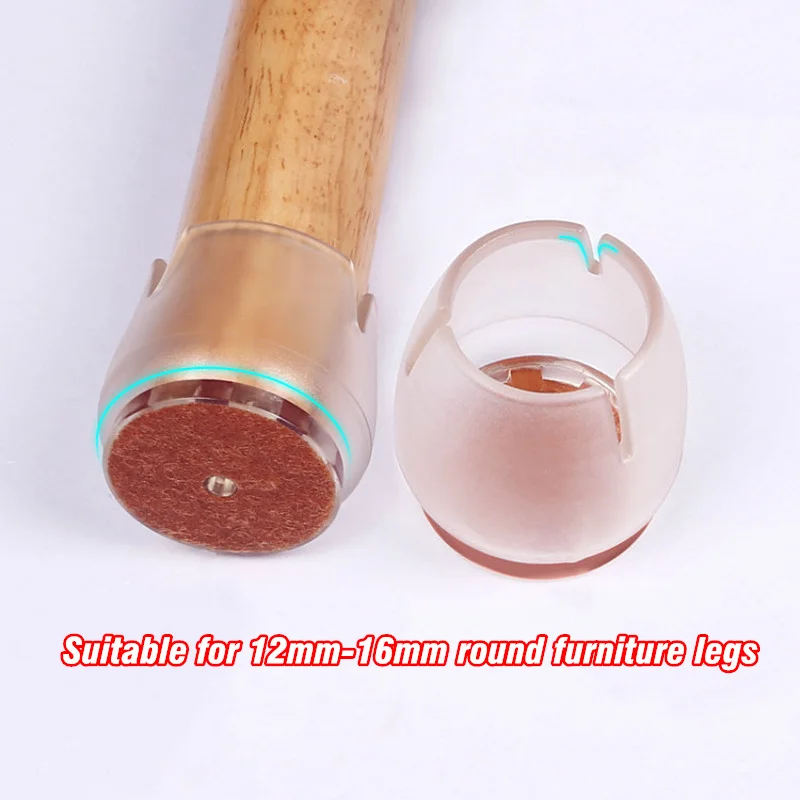 Feature: Suitable for 12mm-16mm round furniture legs (Diameter 4/9 to 5/8 inch). The furniture foot covers color: transparent and brack;The table leg floor protectors Shape: round; Material: silicone and non woven fabrics No need to stick, simple to wrap and not easy to fall off Protects both chair table legs and floor from damage; Anti-slip bottom pad prevents scratches