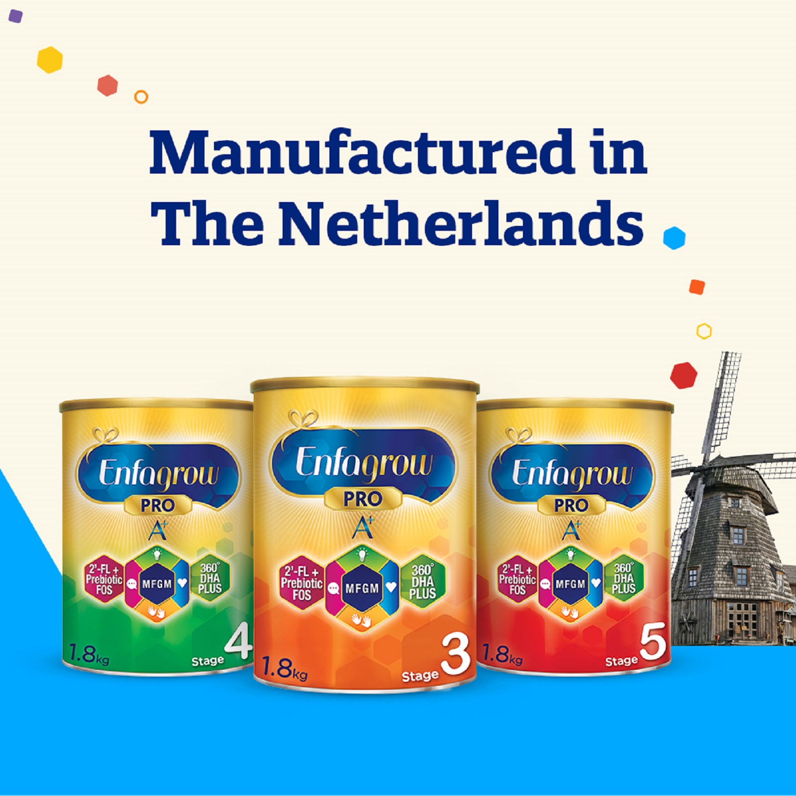 • With over 100 years of experience in pediatric nutrition, Mead Johnson Nutrition has scientifically formulated Enfagrow Pro A+ Stage 4 with a unique blend of nutrients that are important for overall mental and physical development.