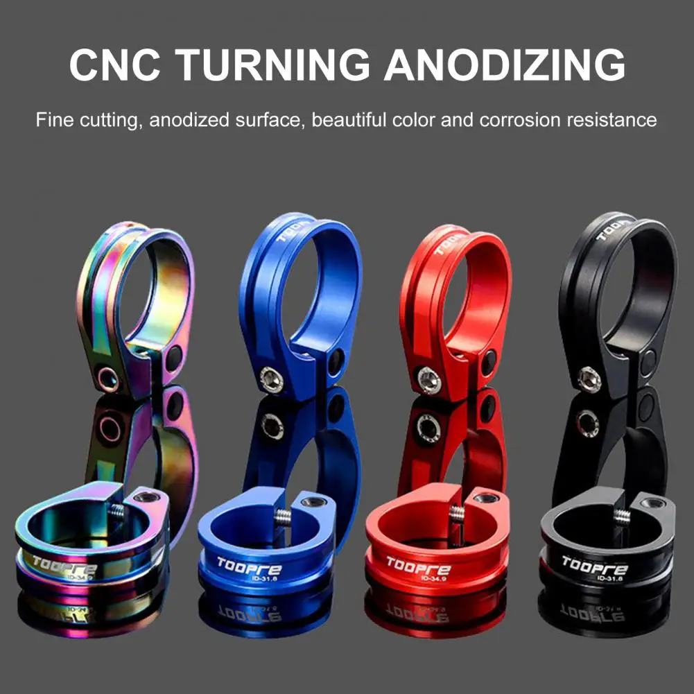 This seat tube clamp is made of aluminum alloy. It is sturdy and has good corrosion resistance.