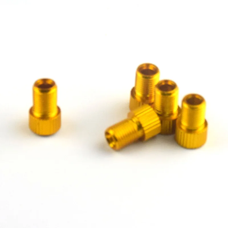 Description: This item help to convert a Presta valve to a Schrader valve. It is suitable for varied types of bikes, including mountain bike, roadbike, folding bike, especially for mountain bikes. Prevent leakage, dirt and rain water to extend the service life of bike tires. It is the best replacement for your old or broken one. Specificaiton: Color: 10 Colors Material: Aluminium alloy. Size: As PIC show Feature: Convert a Presta valve to a Schrader valve. Also turn a UK valve into a US valve. Rocket shape makes the bike look more attractive and special. Direct replacement,easy to install, only use the wrench to put the caps onto the tire valve stem. To tire valve mouth design, filar silk closely, gently turn only. Package List: 5PCS * Aluminum Valve Note: -Due to hand measure, the size may have 1-2 cm error -Due to Different Monitor, the color may have difference -Due to long shipping, the item may damage in transit, if the item damage, pls contact us firstly immediately before leave feedback, thanks for your understanding.