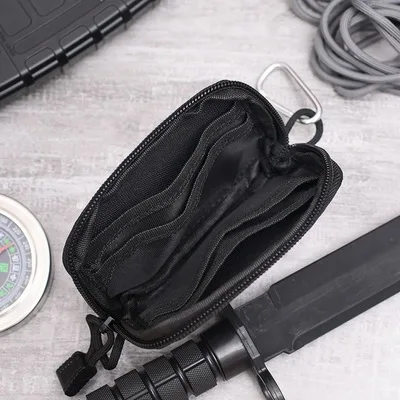 Tactical Mini Wallet Card Money Key Pack Waist Bag Nylon with Free Carabiner Camping Hiking Outdoor Waterproof Belt Small Pouch