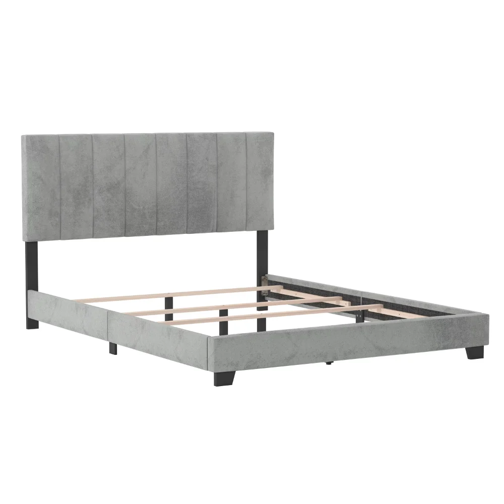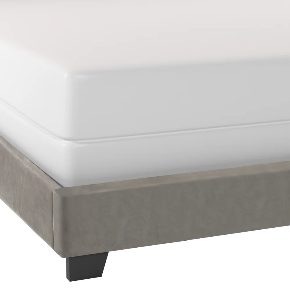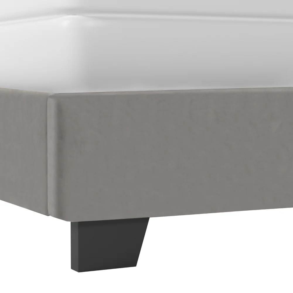 - Fully upholstered with soft-to-touch platinum grey faux velvet fabric