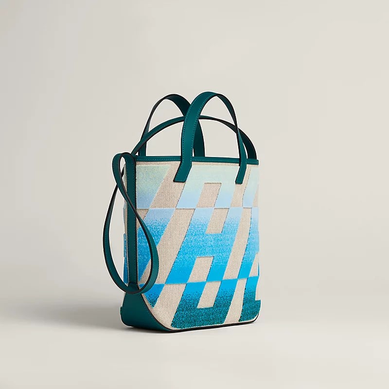H canvas and Swift calfskin tote with tufted 'italic H' and fitted with a shoulder strap.