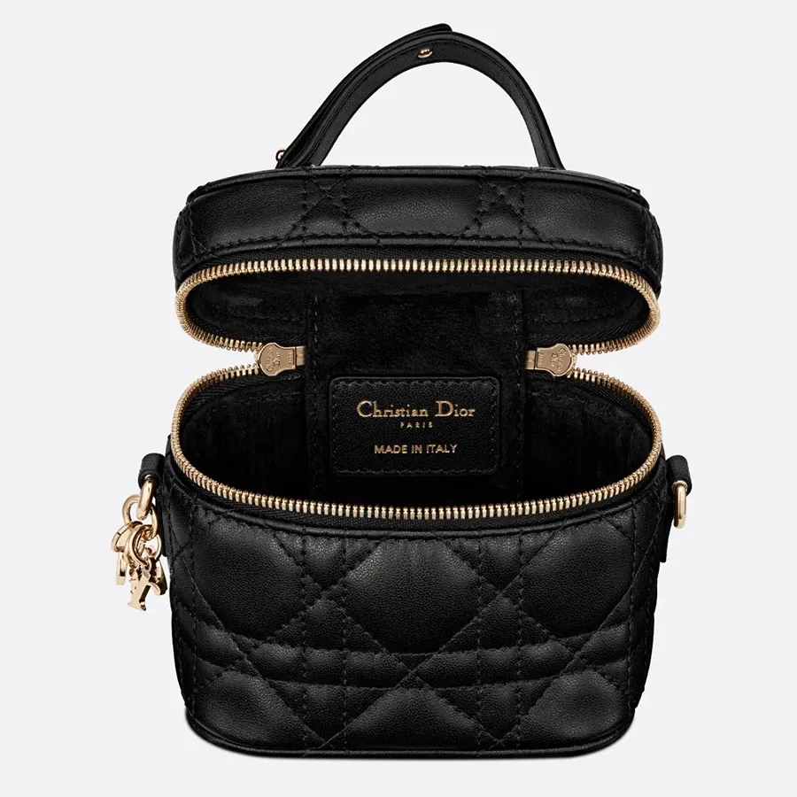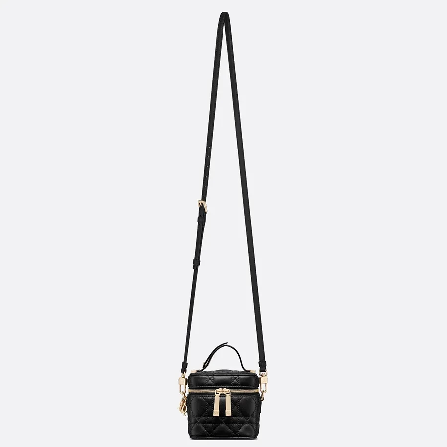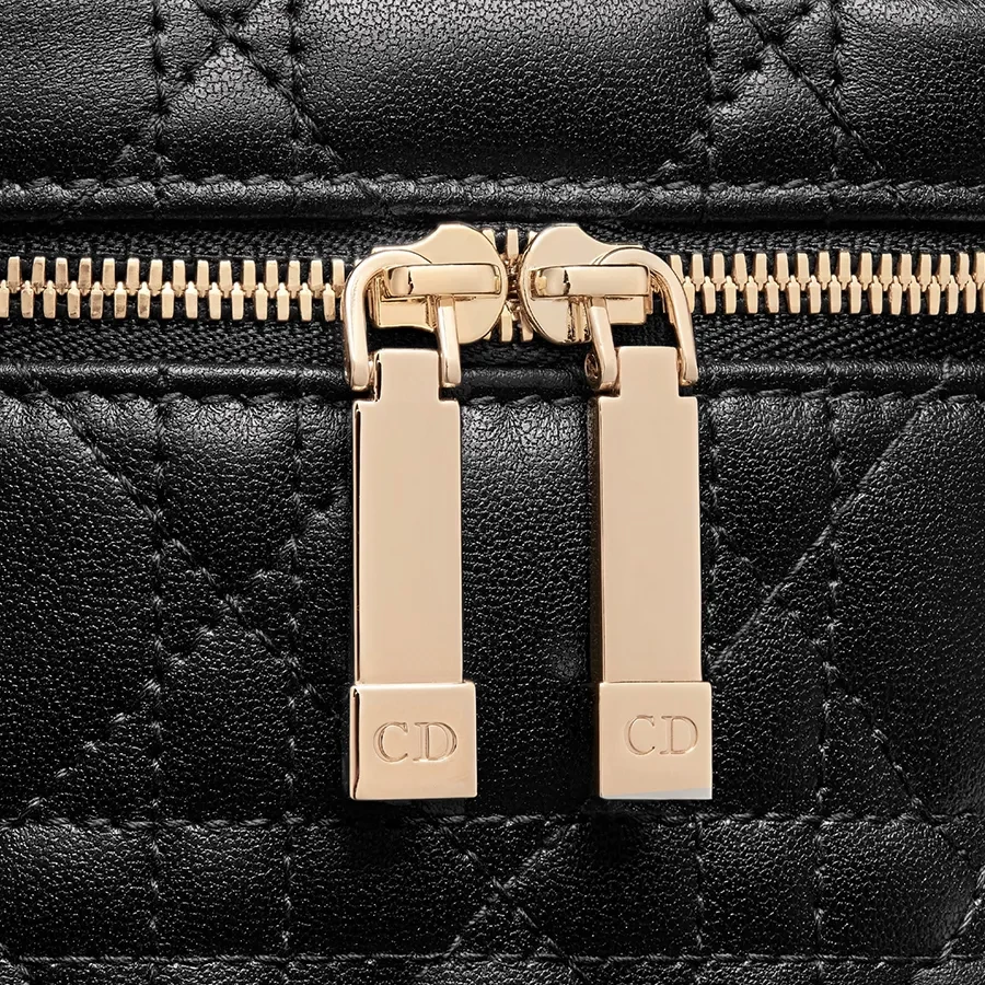 Túi Xách Tay Nữ Dior Vanity Micro Case S0935ONMJ Màu Đen được chế tác bằng da cao cấp với đường khâu Cannage cùng điểm nhấn khóa kéo kim hoàn thiện với tone màu vàng nhạt sang trọng.